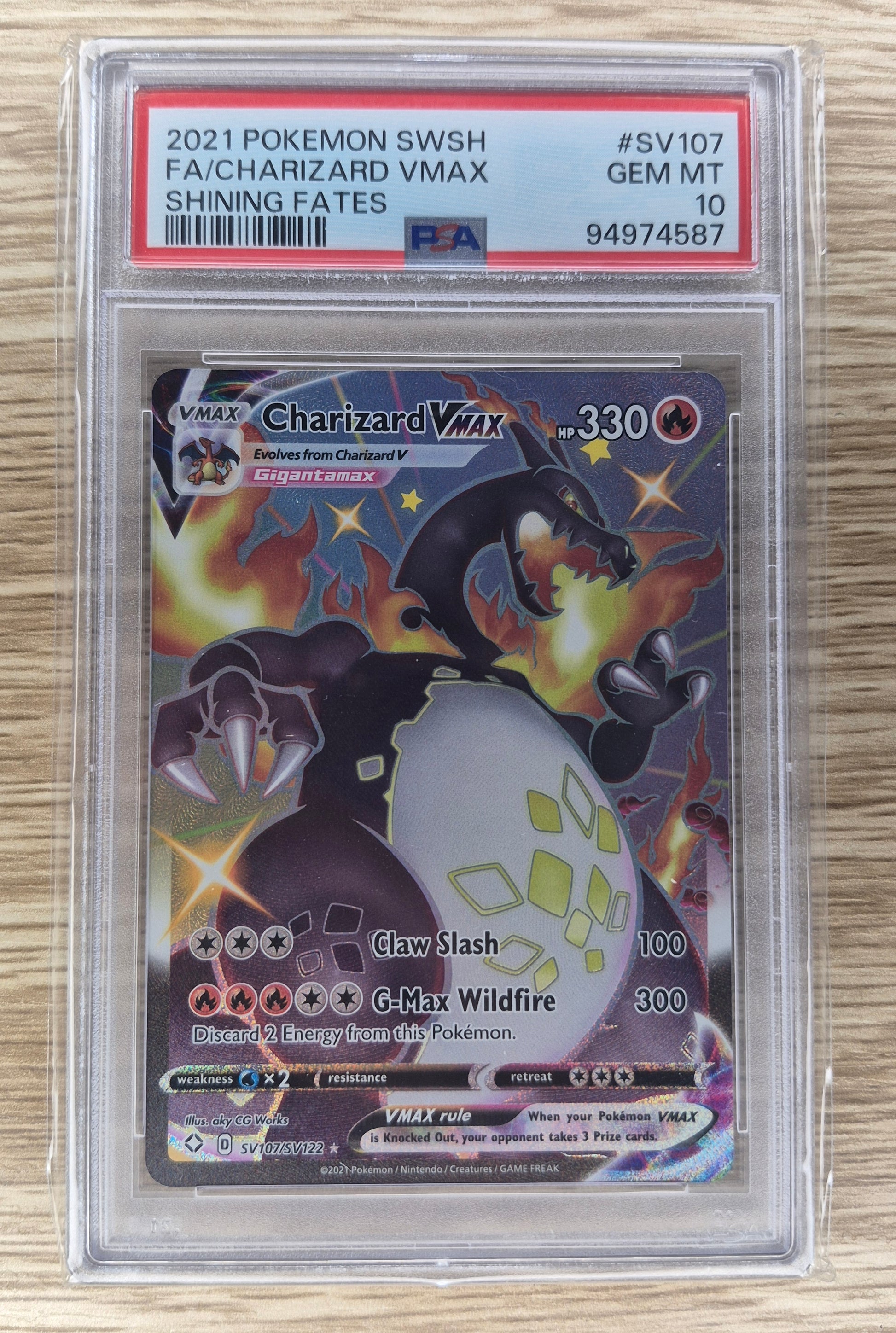 2021 Pokémon SWSH Shining Fates SV107 Charizard Vmax Full Art PSA 10